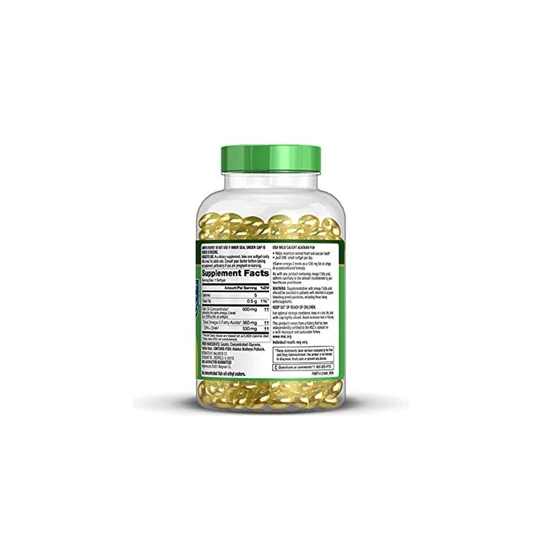 - Half-sized fish oil softgels. Supports heart & vascular health. USA wild caught Alaskan. Half-sized fish oil softgels. Supports heart & vascular health USA Wild Caught Alaskan Fish. With 330 mg EPA + DHA. Just ONE small softgel per day. Same omega-3x levels as a 1200 mg fish oil softgel, in a concentrated formula. as concentrated fish oil ethyl esters.