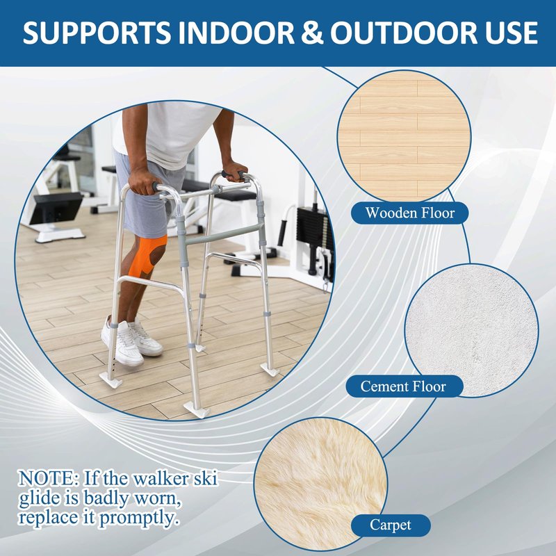 - 【Make Walking Easier】The walker glides for folding walker can help seniors to cross uneven ground easily when using walker, it can be used both indoor and outdoor, the walker glides has smoothness, which can help the walker glide smoothly and make walking smoother