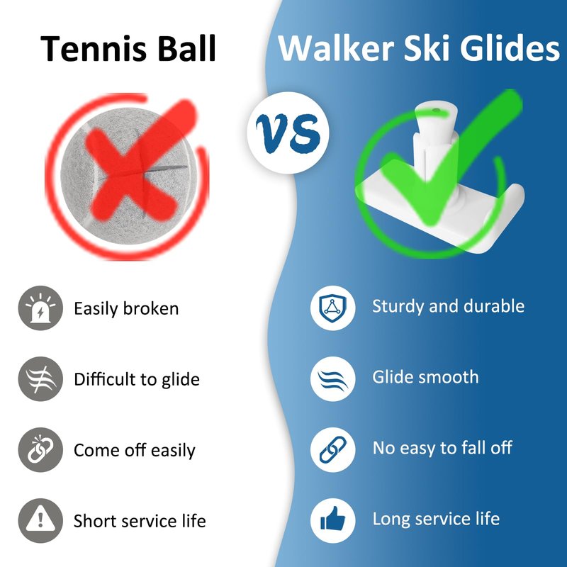 The walker skis glides are an indispensable accessory for your walker and can be used both indoors and outdoors, allowing for smooth travel on carpet and tile as well as stone and grass surfaces.