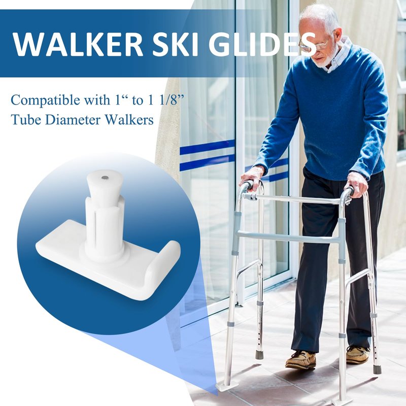 Walker Ski Glides, Universal Fit 1" to 1 1/8" Tubing Diameter Walker, Sliders for Walkers, Glide Skis for Walkers for Seniors Easy to Install (2 Pair)