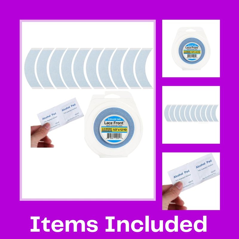 - 【PACKAGE INCLUDES】: 1 X 1/2" x 12 yd Lace front tape roll, 10 X CC curve tape strips, 2 X alcohol pads