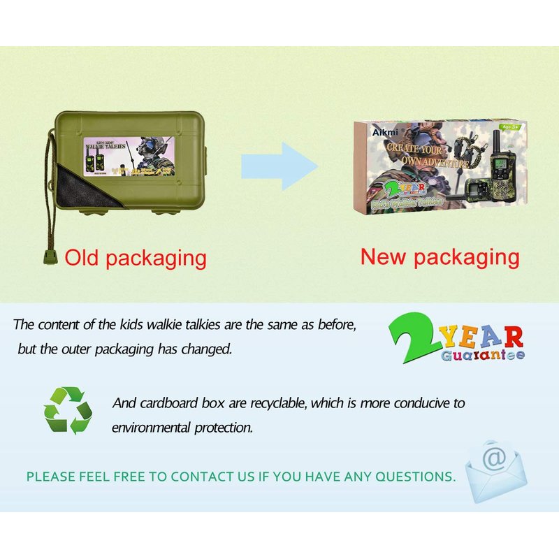 - ☺ENHANCE FAMILY AFFECTION Aikmi walkie talkies for kids can help parents to find an interesting and inspiring way to accompany kids and listen to the inner voices of their kids, bringing the family closer. Let go of technology and be close to nature. Popular boys toys ages 4-12, especially suitable for 5, 6, 7, 8-year-old boys.