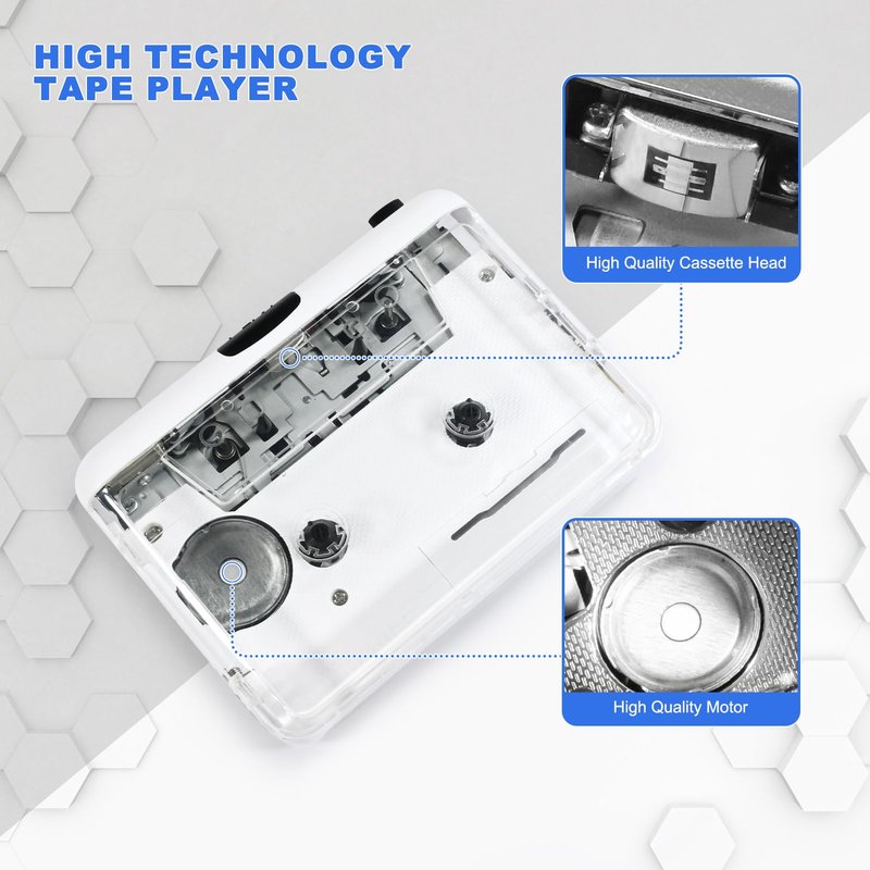 - 【New Classic Cassette Player】Time will pass,while memory never.That's why we need a tape player to digitize all your old cassettes and relive old memories before they go lost.This walkman cassette player has fast forward or fast rewind that lets you locate your favorite cassette music quickly. Besides, our unique tape player use high quality cassette head and motor can play tape music more smooth. So,this cassette player is a best gift for your lovers.