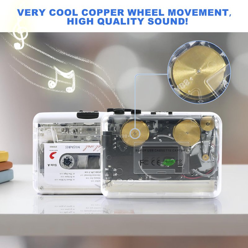 - 【Copper Wheel Movement&Earphone Jack】This tape player has cool copper wheel movement, high quality sound!The 3.5mm earphone jack also provides private personal listening space.