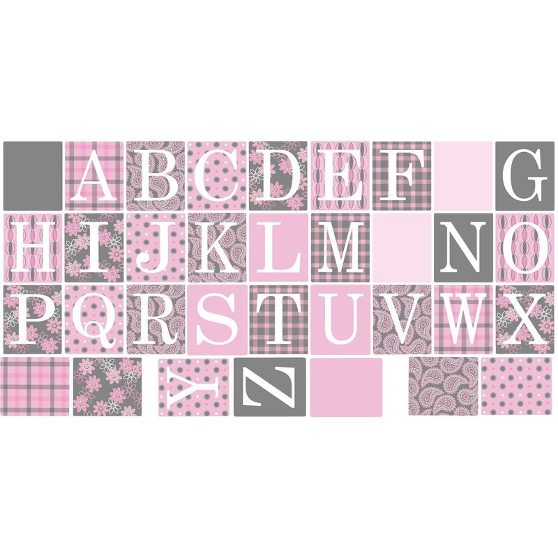 Alphabet in plaid, paisley and polka dots in gray, Millennial pink and white. Our wonderful repositionablematerial works beautifully to create a border or even a quilt of letters. Our adhesive material is matte, thin and it sticks just beautifully to your wall AND it can be repositioned over and over!