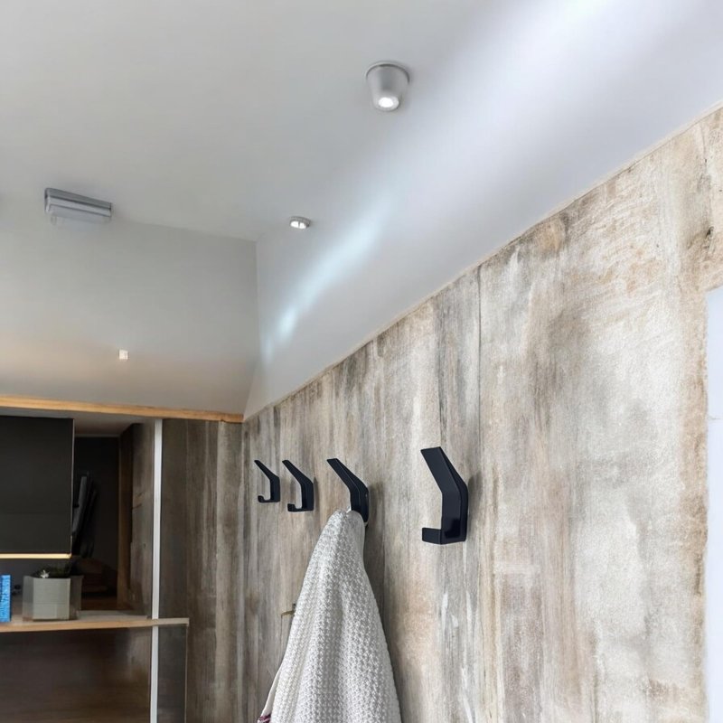 Transform your space with these sleek, silver wall-mounted hooks that blend functionality with modern design. This versatile set of 6 metallic hooks provides a practical storage solution for bathrooms, kitchens, entryways, or bedrooms. Each hook features a sturdy construction and an angled design perfect for hanging towels, robes, kitchen cloths, or other everyday items. The adhesive backing makes installation quick and hassle-free - or you can use screws for heavy duty. The hooks' minimalist profile adds a contemporary touch while maximizing wall space. Their durable metal construction ensures they maintain their appearance and functionality over time. The silver finish complements any decor style, from modern to traditional. Each hook is sized appropriately for standard household items, making them ideal for organizing small spaces or creating additional storage in any room. Keep your belongings neatly arranged and easily accessible with these practical and stylish wall hooks.