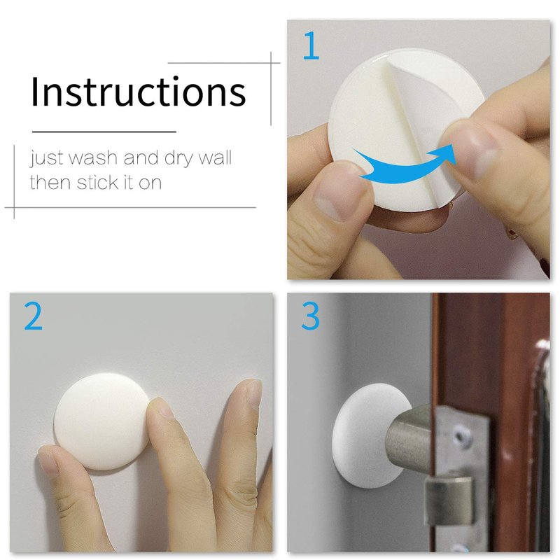 - EASY TO INSTALL:Our door bumpers do not need to be punched, and it has adhesive backing. Just peel off the self adhesive sticker backs and stick to clean-dry surface, please kindly clean the wall before sticking it on,They are so durable, they will never crack or break, so you can protect your walls for years to come