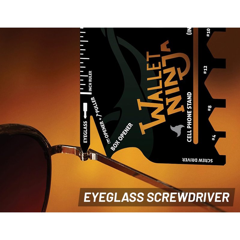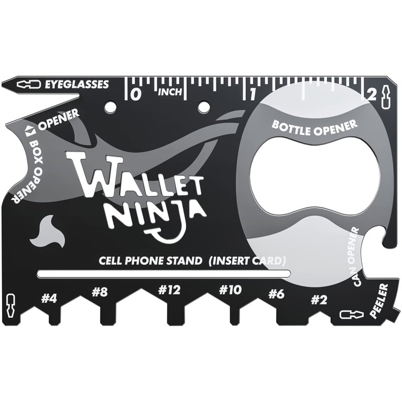 - 18 TOOLS IN 1, CREDIT CARD SIZED TOOL - Wallet Ninja Multitool is your everyday tool that easily fits in your wallet or pocket. A multi-functional tool that functions as a Screwdriver, Bottle Opener, Box Opener, Can Opener, Cellphone Stand, Eyeglass Screwdriver, Beer Opener, Fruit Peeler, Hex Wrench & Nail Puller.