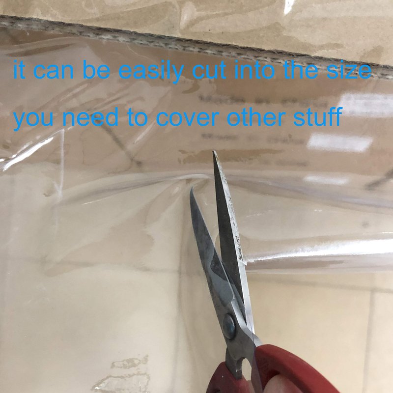 - Clear vinyl Tablecloth Protector allows the beauty of your natural wood table or fine linens to show through and it can be easily cut into the size you need to cover other stuff