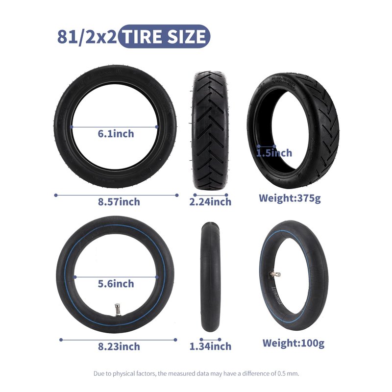 - 【Note】This product includes 8.5 inch straight stem valve inner tube and 8.5 inch tires.81 2x2 and 50/75-6.1 models are suitable for all 8.5x2 electric scooters. Please make sure your scooter tires are straight stem valves before purchasing to avoid delays in your use. Tubes damaged during installation can be replaced for free 1 time.