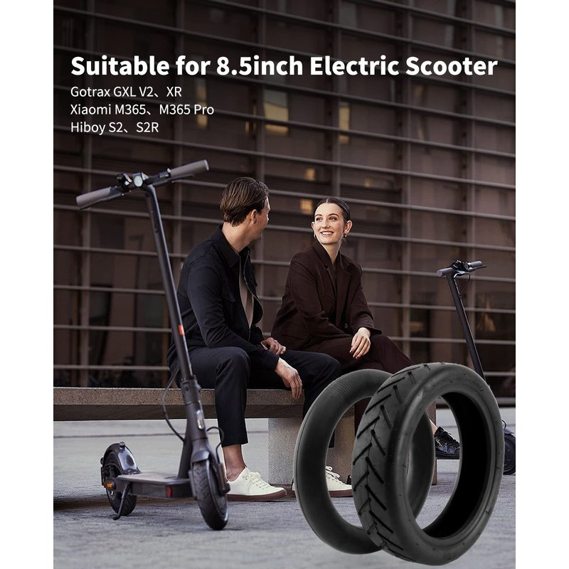 - 【Scooter tire tube 8.5 in compatible type: 50/75-6.1; 81/2x2】The replacement pneumatic tire 8.5x2 is specially designed for Gotrax,Xiaomi scooters. The 8.5x2 scooter tire replacement is compatible with Xiaomi Mijia M365/M365 Pro/Pro 2/1S/Gotrax GXL V2 Electric Scooter, all types of 8.5-inch scooter wheels.