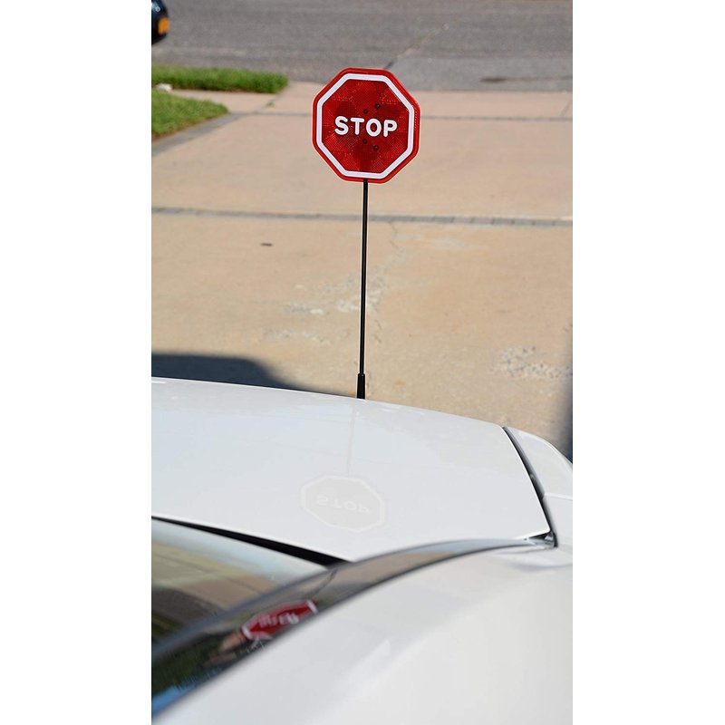 - ✅ Bright Red LED lights up when rod touches bumper - Flashing LED Stop Sign helps you detect when your car bumper is getting too close to the stop sign pole with motion detecting sensors and flashing lights when your bumper hits the pole.