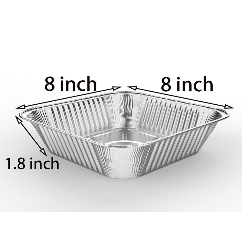 - aluminum pie pans Size : 30Pcs, Our take out food containers come in a perfect square size at 8 x 8 x 2 inches, designed to hold and store your favorite cakes, bread, cookies, lasagna and so much more.