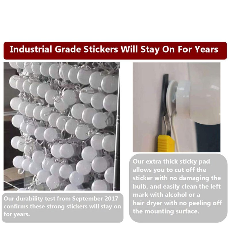 - UPGRADED STICKERS - Updated with industrial-grade sticky pads, our new make-up lights kit will stay on for years to come! We carefully tested these exceptional stickers and successfully took this commercial secret into mass production with consideration. The extra thick design makes the stickers easy to remove and 2 extra stickers are supplied for re-positioning.