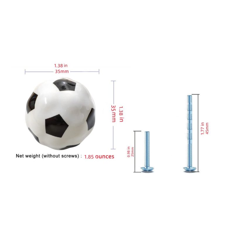 Ceramic Football knobs Sized: Diameter (approx)1.38inches ,Height (approx)1.38inch ,Single net weight (including screws): 1.93 ounce