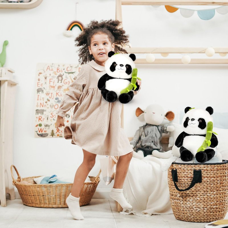 Wanwu World Panda Stuffed Animal 9'' Panda Bear Plush Toys with Bamboo Stuffed Panda Plushies Cute Panda Doll Gifts Black and White (9inch)