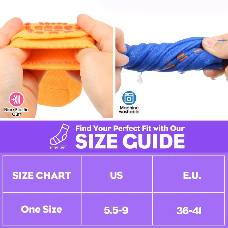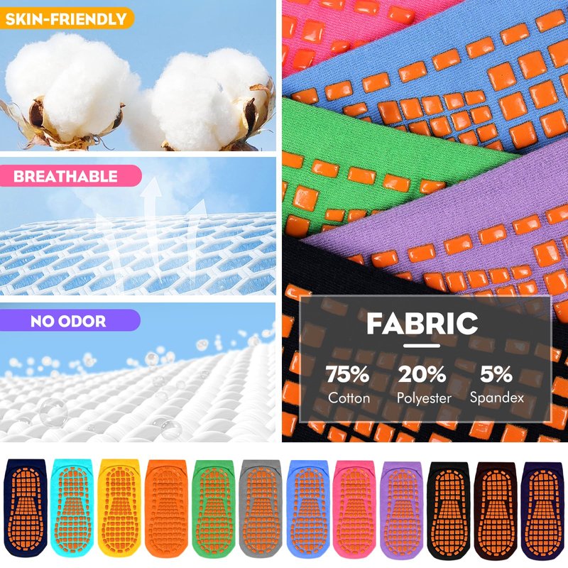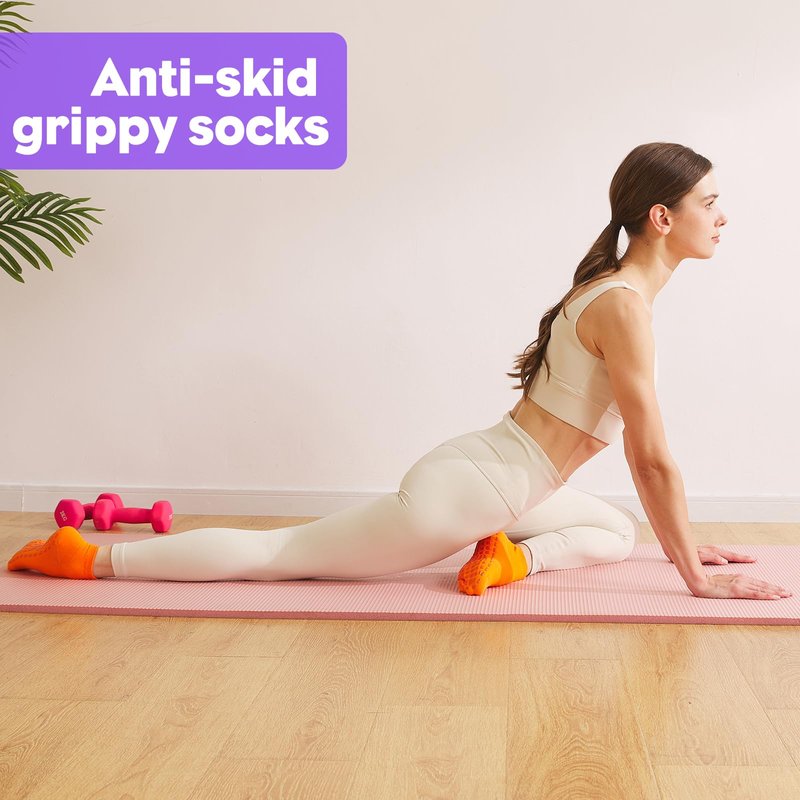- 【NON SLIP PILATE GRIP SOCKS】Grip sole dots of the yoga socks bring improved stability & balance so that you can stay safe, avoid injuries and have better control of your body. The rubber grippers on the sole provide strong support for yoga, pilates, barre, dance, trampoline and running without shoes. You can hardly feel the grippy socks which spare you more concentration and freedom. Get more confident in your routine on home, hospital, gym, studio and more other places