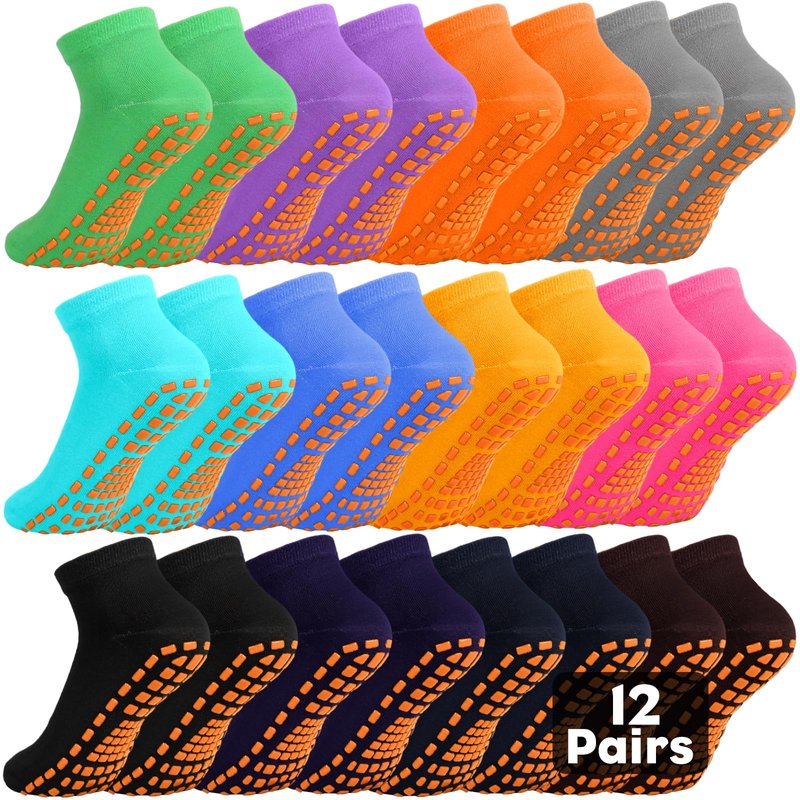 WANZHIHUI 12 Pairs Pilate Grip Socks for Women Anti-Skid Yoga Socks with Grips Hospital Socks Solid Color Bulk Ankle Socks