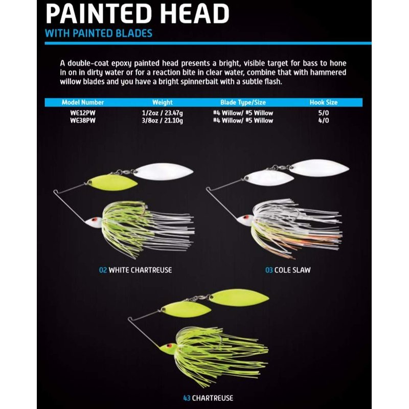 War Eagle Custom Lures Painted Head Spinnerbait Fishing Lure, Chartreuse, Painted Double Willow (1/2 oz)