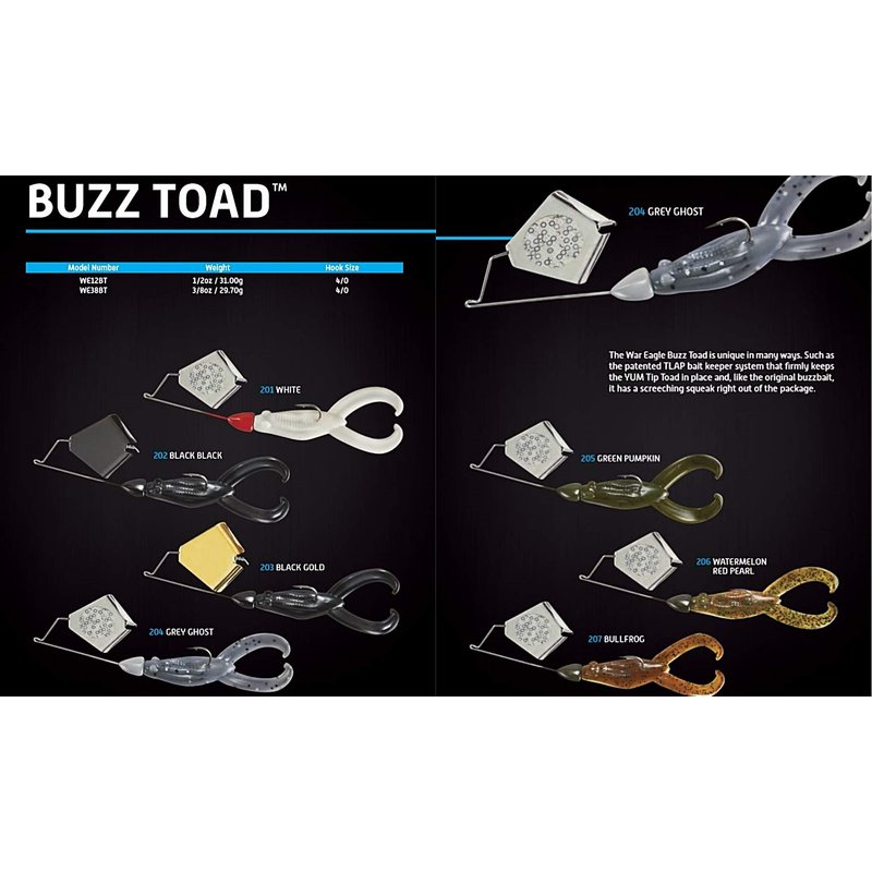 War Eagle Custom Lures WE12BT202 1/2 Buzztoad Artificial Fishing Bait, Black/Black