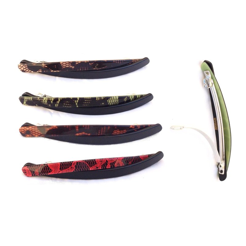 Wardani 12 Cm Twisted Lace 2 tone Long acetate french Barrette Clip, handmade in France Dentelle (Orange)