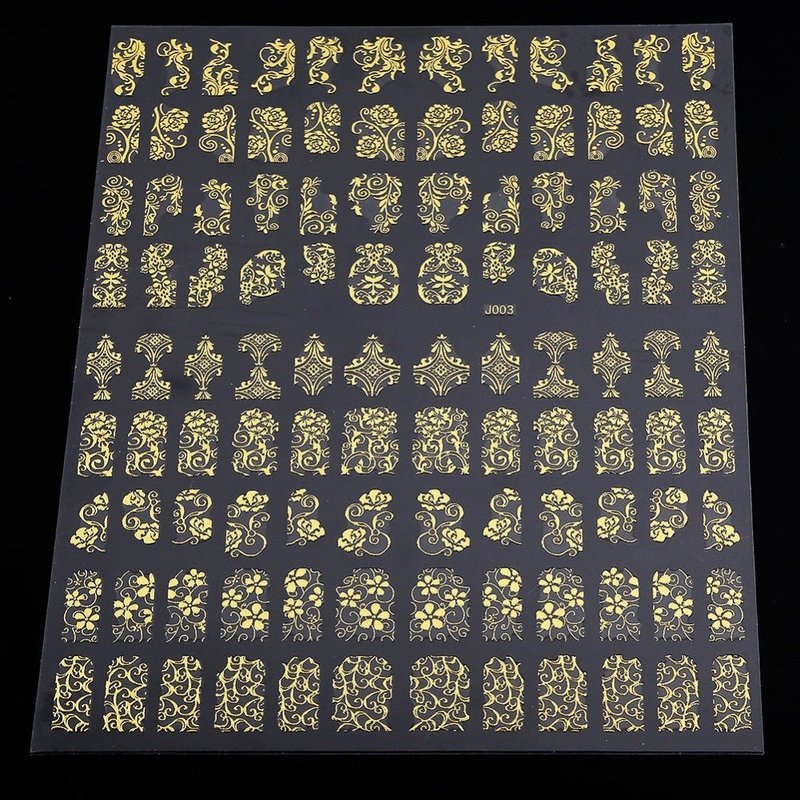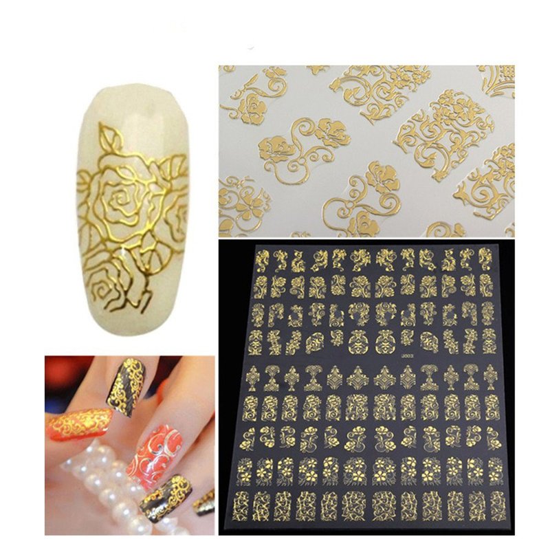 Warm Girl 432pcs 3D Flower Nail Art Stickers DIY Nail Decoration Tools 4 Sheets (Glod Sliver Black White)