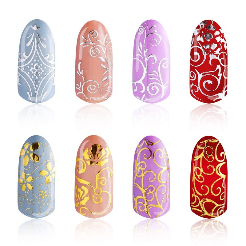 - adhesive nail art stickers to fit all fingernails, toe nails and nail tips; These decals are huge and fine if you have long nails, for shorter nails, they also can be cut and keep a pretty pattern