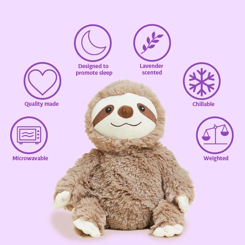 warmies Microwavable & Weighted Stuffed Animals, Sloth - Heated Stuffed Animal Plushie for Warmth & Comfort - Cute Soft Plush Toys for Boys, Girls, Babies & Toddlers