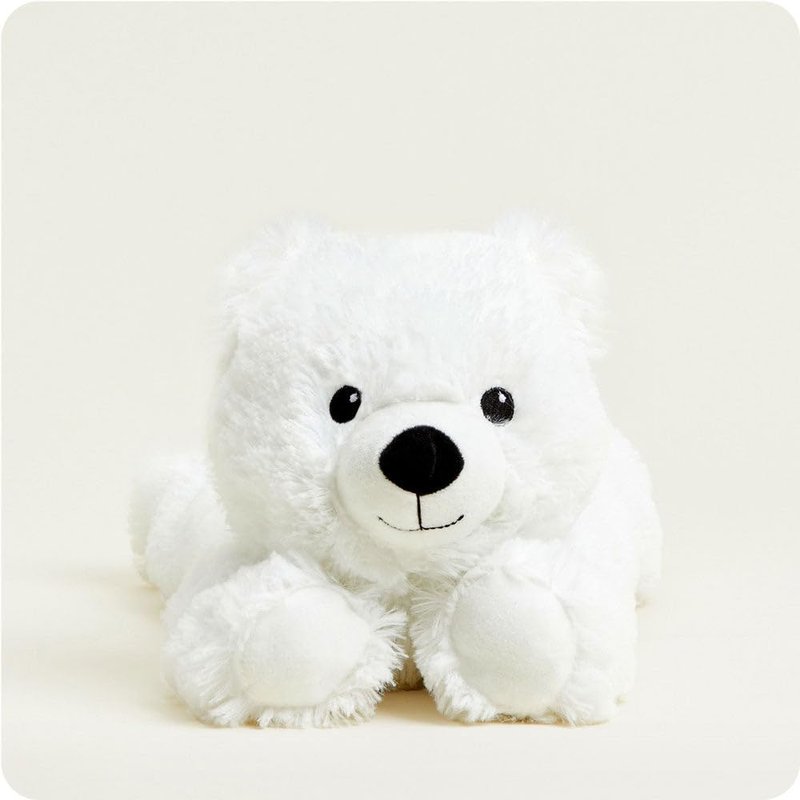 - Warmies Microwavable Stuffed Animal: White Bear is a snuggable, huggable, lovable weighted plush toy for all ages that can be easily heated for hours of soothing warmth and calming comfort or chilled to provide cooling relief. 13 inches tall. 2lbs.