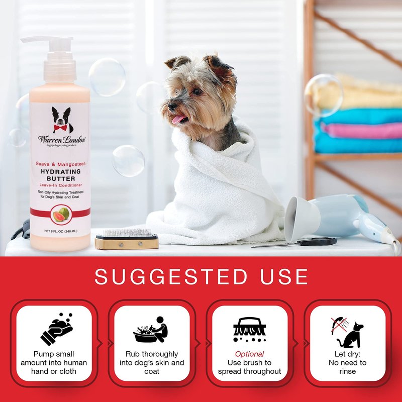 Warren London Hydrating Butter Leave In Pet Conditioner for Dogs | Lotion Skin and Coat Aloe Puppy & Dog Hair Detangler, Dry Skin, Fur Dandruff Use After Shampoo Bathing Made in USA Guava 8oz