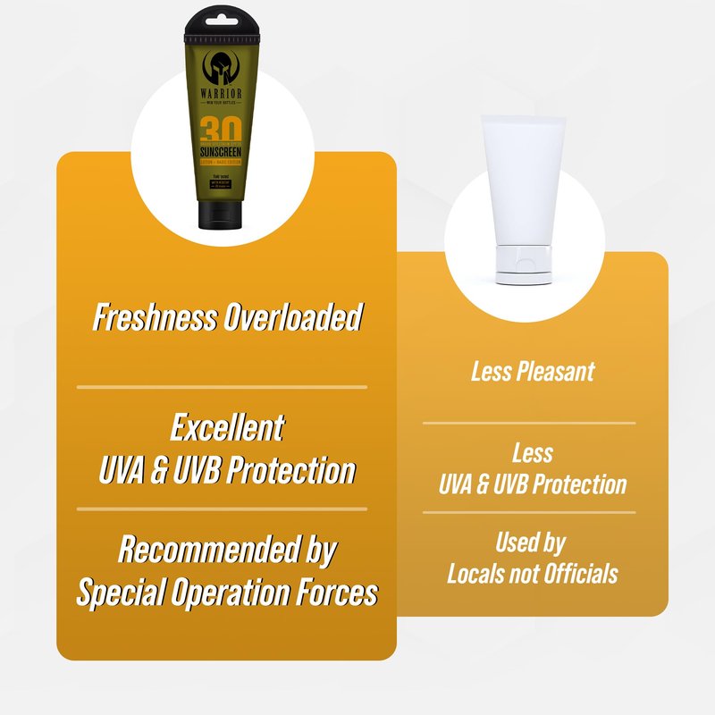 - FIELD TESTED & MILITARY APPROVED: Proudly Made in America, Warrior’s non-mineral high SPF sunscreen is rigorously field tested and trusted by the US Military. It's designed to withstand tough conditions, ensuring you stay protected wherever you are.