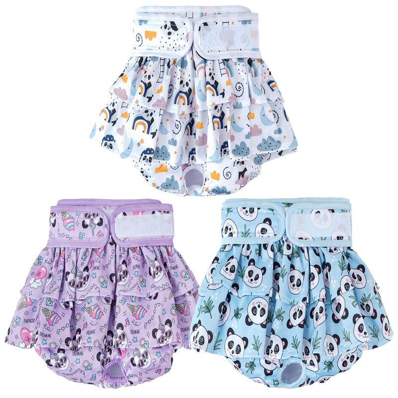 Washable Dog Diapers Female, 3 Pack Premium Reusable Doggie Diapers,High Absorbency Leak-Proof Puppy Diapers for Female Dog in Heat, Period, Incontinence, Excitable Urination Girl Dog Diapers Dress