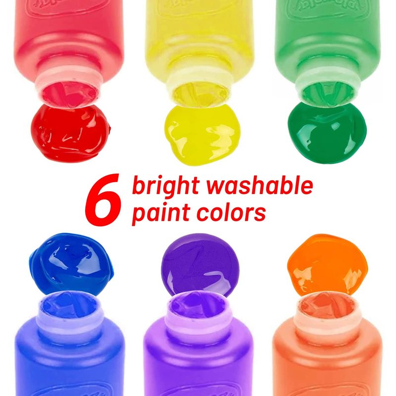 Washable Kids Paint 6 Count, 7 Paint Brushes, Paint Palette - Washable Paint Set For Kids Craft Projects, Finger Painting Supplies Kit