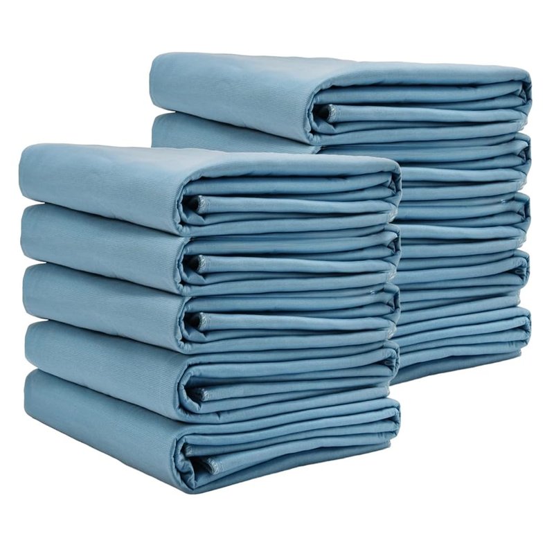ABSORBENCY – When it comes to incontinence protection for beds, furniture and floors, the urine absorbency level of the bed pads is the most important thing to consider. These moderate absorbency chux pads can hold over 8 oz of liquid. Giving bedding overnight protection from pee and other bodily fluids. AMPLE COVERAGE - Each extra-large reusable under pad measures 54-inches on the long side and 36-inches on the short side. These washable XL underpads will give you more than enough coverage and protection. Our absorbent mattress guards cover more than just the area under the patient, but also the areas on the side, making these perfect for people that move around in their sleep. COMFORTABLE AND SLIP RESISTANT -These pee pads have a PVC backing, helping keep these urine protectors in place. Having these bed covers stay in place gives the patient and caregivers the added peace of mind knowing that you and your furniture are protected from leaks. MACHINE WASHABLE - These incontinence bed pads are reusable and machine washable. Under pads are made from a cotton and polyester blend allowing each bepad to be washed hundreds of times without falling apart, making these urine pads a great cost efficient choice. TOP QUALITY - This pack contains 10 thick high quality bedpads. Protection pads are great for protecting twin, queen, and king size beds. They are perfect for children, adults and seniors. Pads are also great as reusable pet pads, great for training dogs, cats, puppy’s and bunnies.