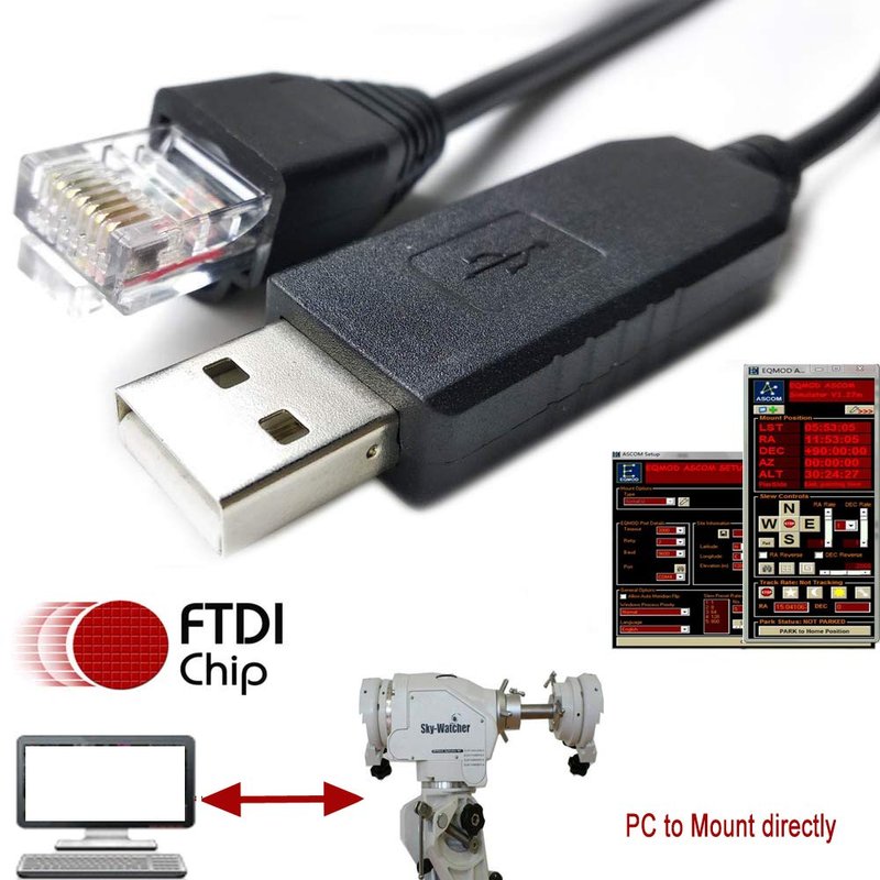 Washinglee RJ45 Control Cable for Skywatcher and Orion Mount, for Heq5 pro, Azeq5, Azeq6, Eq6-R, Eq6-R Pro and Orion Sirius Mount, Eqmod USB Console Cable for Skywatcher GOTO Mount (16 FT / 5M)