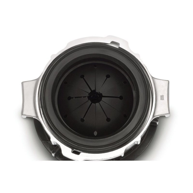 - Removable splash guard prevents any unwanted items from the sink from going down the drain or into the disposal