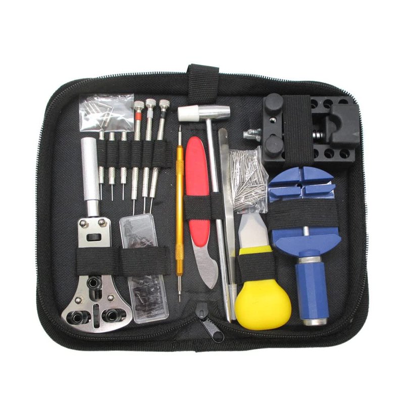 - Our comprehensive watch repair kit consists of all the essential watch repair tools, including an adjustable watch case opener, case opener pins and knife, tweezers, spring bar tool, hammer, link remover tool, watch case holder, watch back opener, screwdrivers, pin punches and more.
