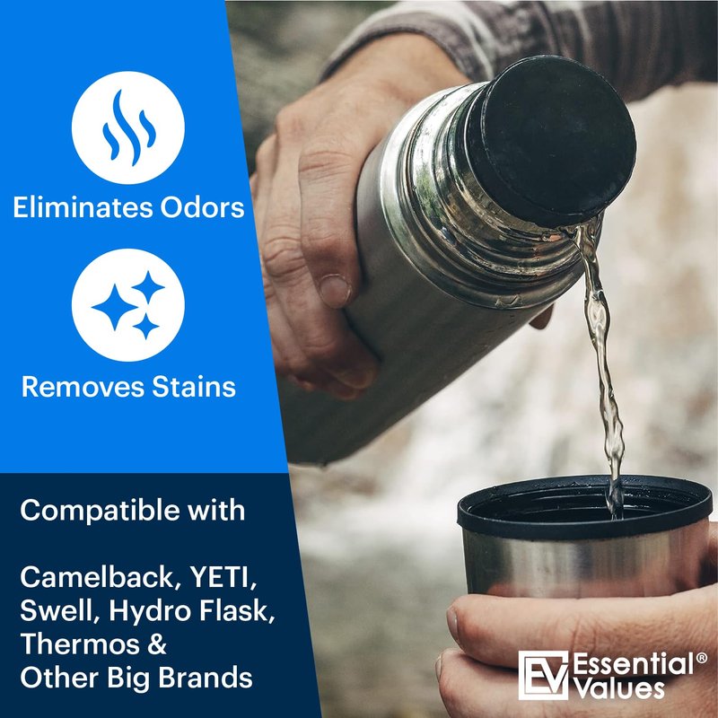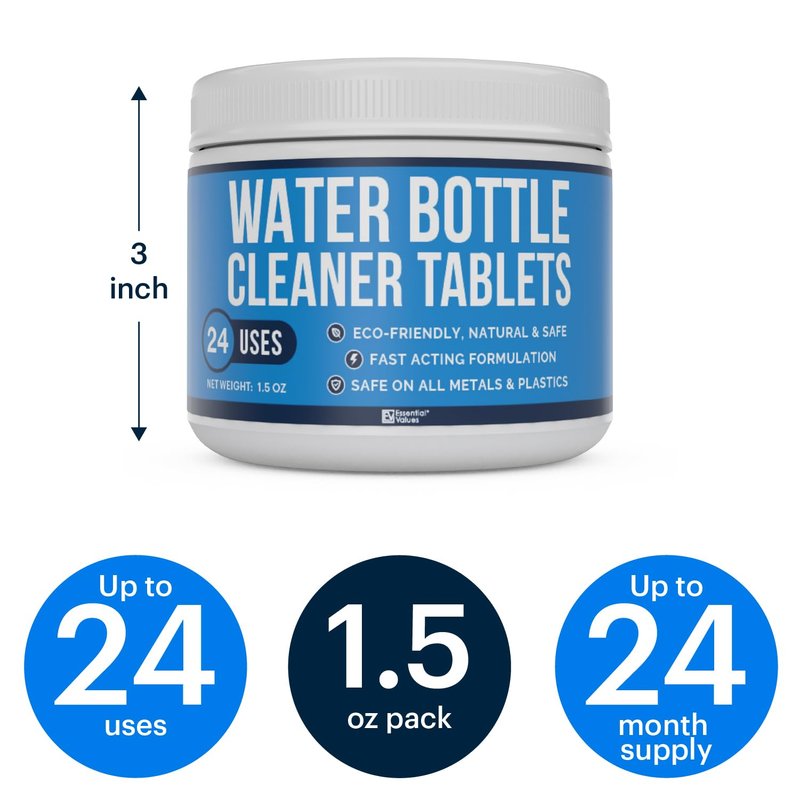 Essential Values brings you everyday products that don't break the bank. We use the products we sell to ensure the highest quality of standards but more importantly to make certain our customers are receiving the best customer experience possible! We believe everyone has the Right to Enjoy a Clean, Fresh Tasting beverage EVERY TIME – Regardless of Bottle/Reservoir Type & Size! Our 24 tablet container gives you approximately 24 uses of cleaning at a fraction of the cost of the Major branded cleaners. Buy Today!