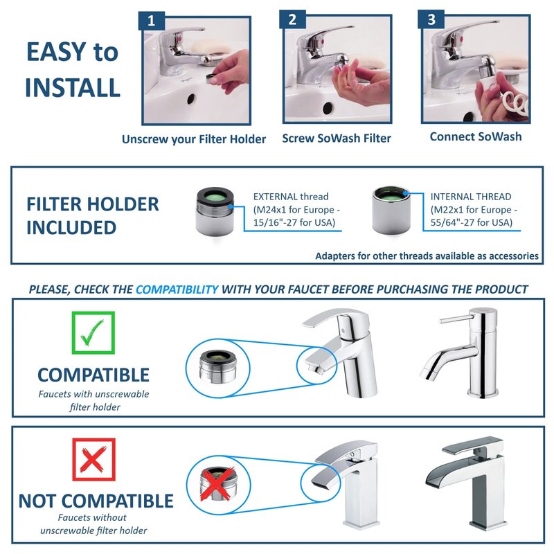Water Flosser SOWASH WATERJET, Faucet Oral Irrigator Dental Water Floss, It Connects Directly to The Faucet, Non-Electric Dental Irrigator, Italian Product