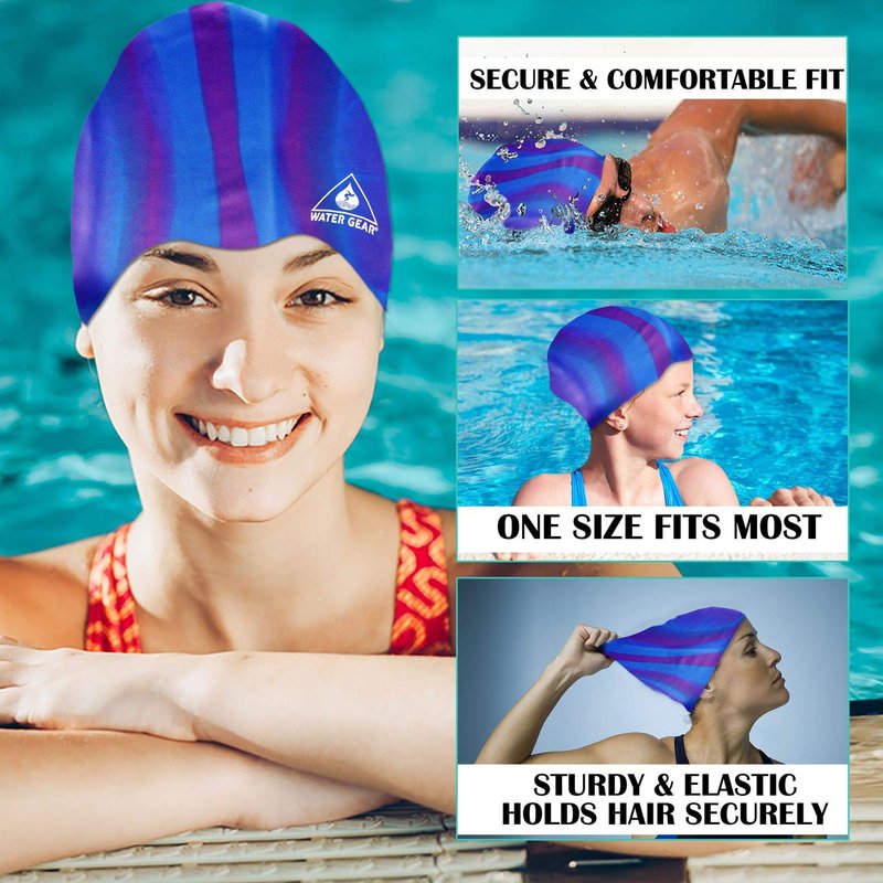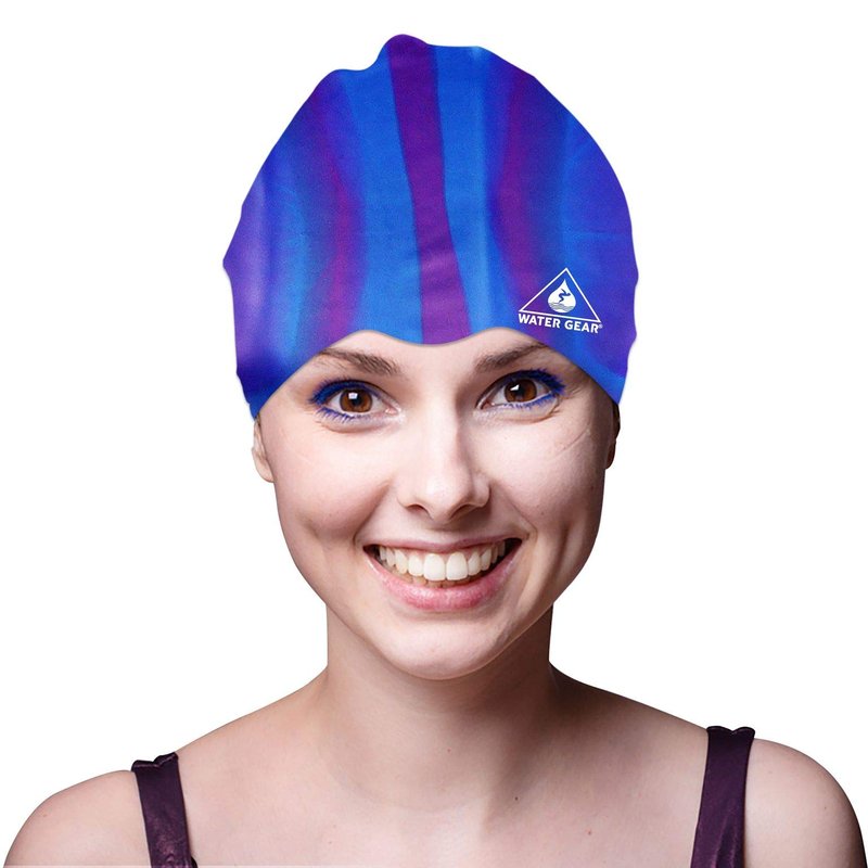 Water Gear Jazz Silicone Swim Cap - Flexible Unisex - Great for Short and Long Hair - Improve Your Performance (Blue/Purple, One Size)
