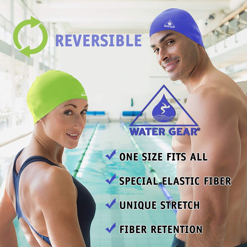 Introducing the Water Gear Synthetic Fiber Swim Cap - Your Ultimate Comfort and Durability Solution for Swimming! Dive into the world of swimming with the Water Gear Synthetic Fiber Swim Cap, the perfect companion for all your aquatic adventures. Whether you're a seasoned swimmer or just dipping your toes in the water, this swim cap promises an unparalleled experience that combines comfort, durability, and functionality. Say goodbye to uncomfortable swim caps that leave you distracted during your swim. Our swim cap boasts a lightweight design that ensures maximum comfort without compromising on performance. The elastic fiber and unique stretch offer a snug fit that keeps water out, so you can focus solely on perfecting your strokes. Unlike traditional rubber and silicone swim caps, our large swim cap crafted from high-quality lycra material effortlessly conforms to the unique shape of every head. Enjoy a secure, personalized fit every time you hit the water. The Water Gear Synthetic Fiber Swim Cap is engineered to outlast traditional silicone and rubber caps, providing you with reliable performance for years to come. Simply ensure proper drying after each use, and this neon wonder will remain your swimming companion for countless aquatic escapades. Tired of dealing with tangled and knotted hair after swimming? This swim cap material is a game-changer. Unlike sticky silicone caps, our synthetic fiber cap will not cling to your hair, making it a breeze to put on and remove without any unwanted hair-pulling. If you're a competitive swimmer, this cap will be your ultimate secret weapon. Compatible with silicone swim caps, our swimming cap for women with long hair allows you to enjoy enhanced comfort and peak performance during competitions. Are you ready to elevate your swimming experience to new heights? Experience unmatched comfort, durability, and hair protection with the Water Gear Synthetic Fiber Swim Cap. Dive in today and enjoy the freedom to swim without limits!
