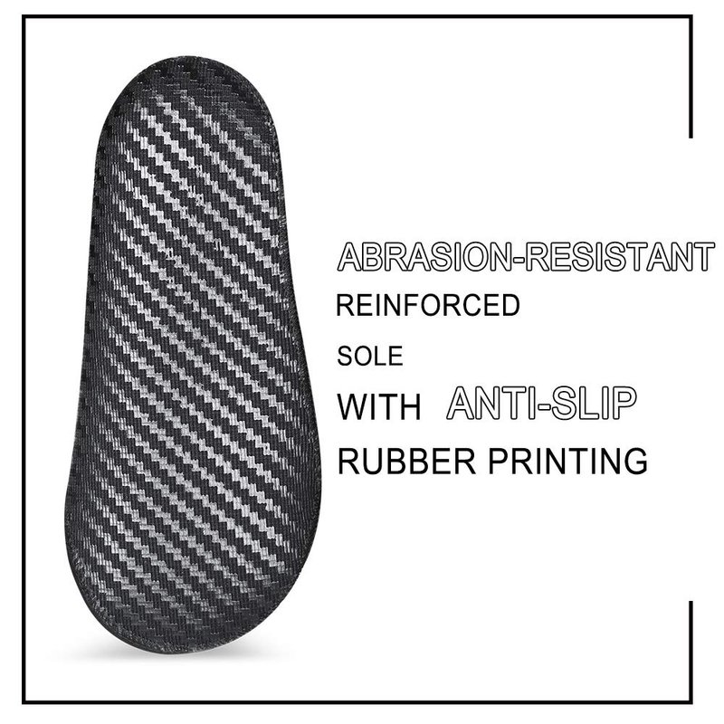 Reinforced sole with rubber printing can handle any slippery,sandy and rugged using environment.