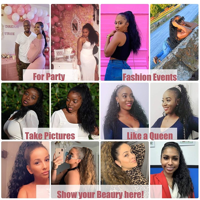 - 2. Fashion&Quick Beautiful Style:Kinky Curly Drawstring Ponytail,Water Corn Curly Clip On Ponytail,Soft and Comfortable, No tangle, No peeling, Easy to Use,Blend Well into Your Hair.
