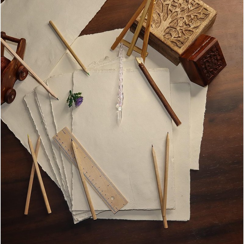- ✔️ HANDMADE BY ARTISANS - blank 100% cotton paper sheets, hand made using traditional practices passed through generations dating back to 14th century India. Dried in the sun, this gorgeous textured paper is a timeless and inspiring alternative to ordinary paper. May also be referred to as rag paper, cotton rag paper, raw edge, rough edge or torn edge.