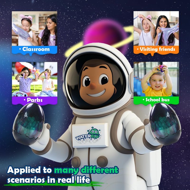 WaterElf Galaxy Slime Kit: The Ultimate Fun for Kids and Adults! Unleash a world of creativity and stress relief with the WaterElf Galaxy Slime Kit, designed to captivate kids, boys, girls, and even adults! This exciting slime kit includes a 36 pack of vibrant galaxy slimes, ensure safe play for children of all ages. 420ml (18oz) per pack, youβll have plenty of colorful slime to stretch and shapes.Perfect for any occasion, our putty galaxy slime kit makes an ideal addition to Christmas stocking stuffers, birthday party favors, Easter baskets, craft kit, traveling or classroom prizes. Imagine the joy on your childβs easter egg fillers! Each big egg is filled with fun, providing not only entertainment but also valuable stress reliefβa perfect way to unwind after a long day.Our unique selection features galaxy slime in stunning colors like green making it a visual treat for everyone. Whether you're hosting a slime party, looking for goodie bag stuffers, or seeking creative gifts for kids, this kit has you covered party favors.At WaterElf, we believe in the power of play. Our journey began with a passion for creating high-quality, engaging toys that foster creativity and imagination. We understand the importance of safe, fun experiences for children, which is why our slime is made from premium materials that are both stretchy and non-sticky. Not only does our Galaxy Slime Kit provide endless hours of fun, but it also encourages sensory development and imaginative play. Kids love exploring different textures and colors while engaging in creative activities, making this kit a must-have for every household. With our commitment to quality, dive into the magical universe of slime with WaterElf, where every squeeze brings joy and every color inspires creativity. Order your Galaxy Slime Kit today and watch as your childβs imagination takes flight! Perfect for Easter fun, stress relief, this is more than just a toy; itβs an experience!Make it a Christmas craft kit gift for your kids, friends, and family.