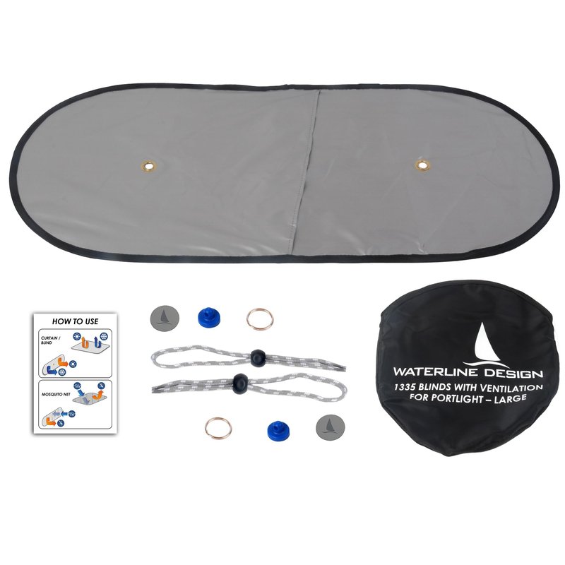 Waterline Design | Blackout Shade for Large Portlights | Blind with Ventilation for Best Sleep onboard | Combines 100% Blackout, Vent and Bug Screen | Easy to Set up (1335) Hatch is not Included.
