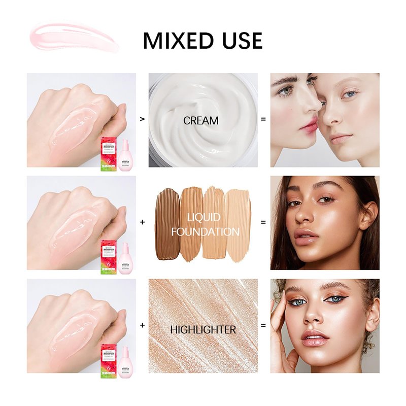 - 【Skincare + Makeup Primer Hybrid】- Experience an immediate and long-lasting radiant complexion with our niacinamide-infused highlighting serum. This serum effortlessly enhances the skin's brightness, revealing a dewy glow instantly and over time. Its lightweight and buildable texture allows for quick absorption, making it suitable for all skin types.