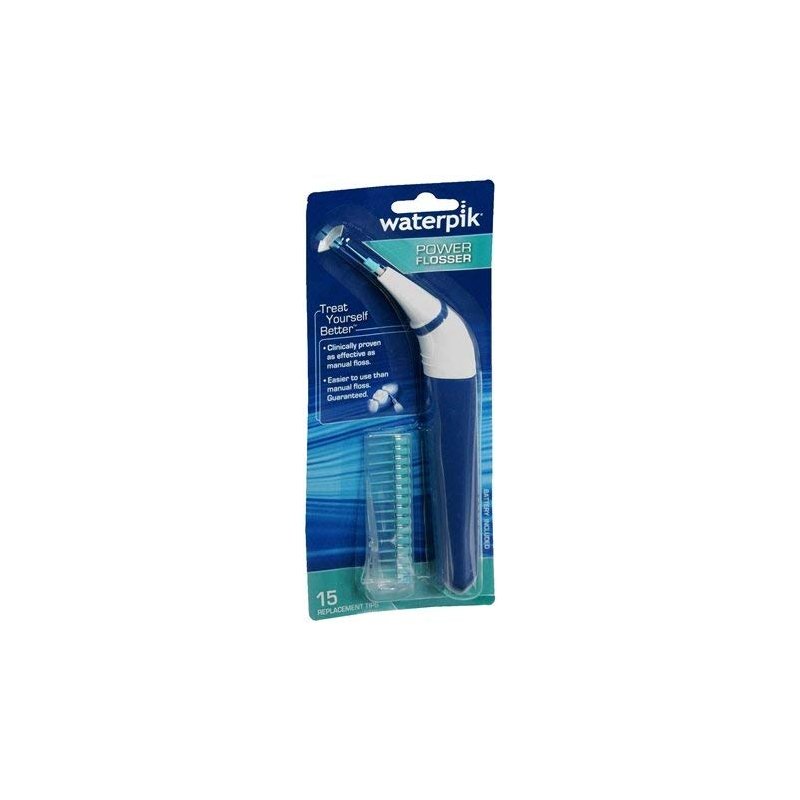 Floss your teeth, the easy way Waterpik Power Flossers are clinically proven as effective as string floss plus they reduce bleeding gums, inflammation and plaque. Over 80 percent of the participants in a recent study preferred the Waterpik Power Flosser to string floss. Features: Clinically proven as effective as string floss Easier to use than string floss Cleans between teeth where plaque forms and stains are toughest to reach 10000 gentle strokes per minute remove plaque above and below the gum line Flexible nylon tip slips easily between teeth and is gentle enough to use every day Replaceable AA battery Box Contents: Power Flosser/15 disposable flossing tips Product Dimensions: 0"W x 0"H x 0"L Weight: 0.18 lbs