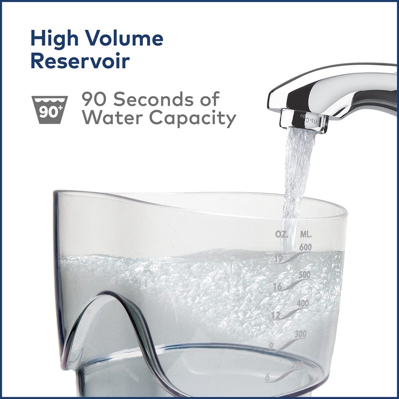 - EASY TO USE: Water flosser tips rotate 360-degrees to reach all areas of the mouth, handle features a convenient on/off switch to control water flow and tip storage built into the reservoir lid