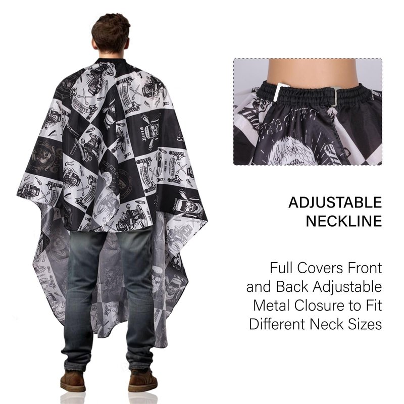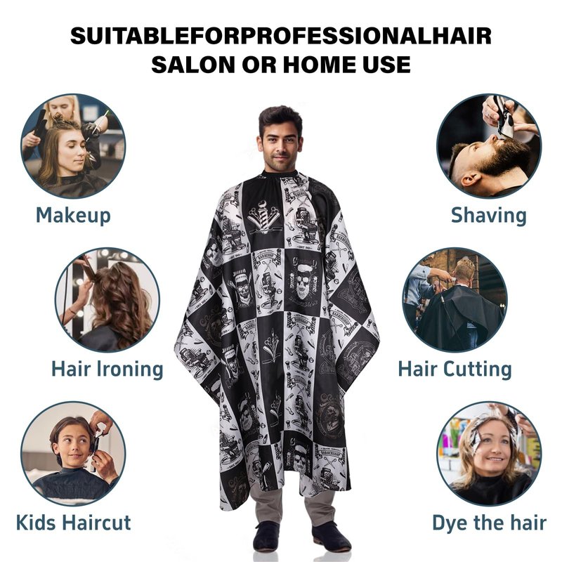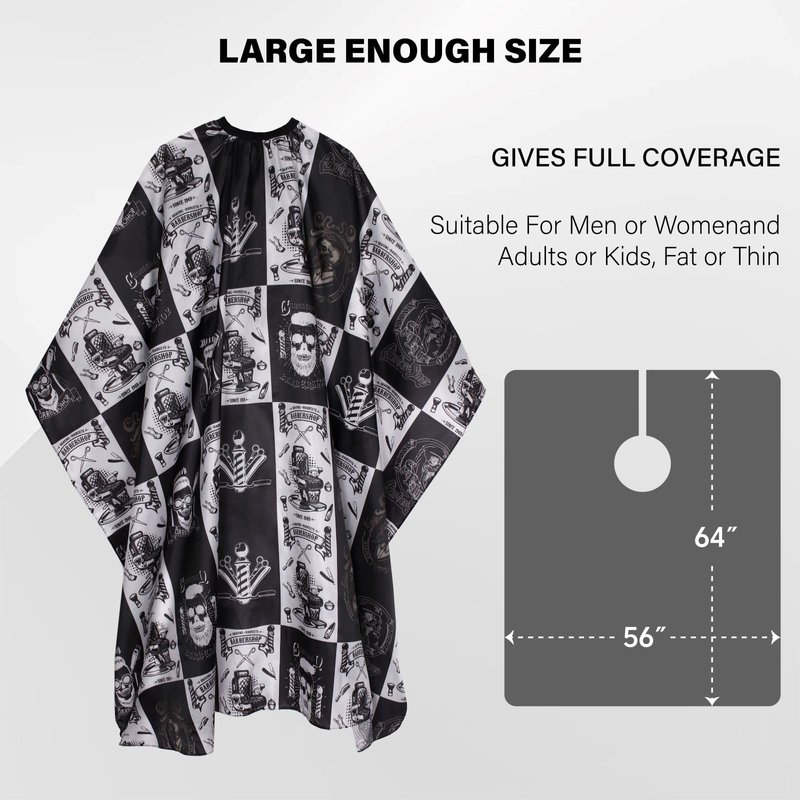- Large Size:The size of hair cutting cape is 64 × 56 in, which is large enough to fully cover your body to protect your body from bother of broken hair Hair styling cape has wide coverage can cover your clothes during haircuts or hair care no matter you sit or stand can avoid the hair falling into neckline or making cloth dirty while the haircut, ideal for salon haircut, styling and hair coloring.